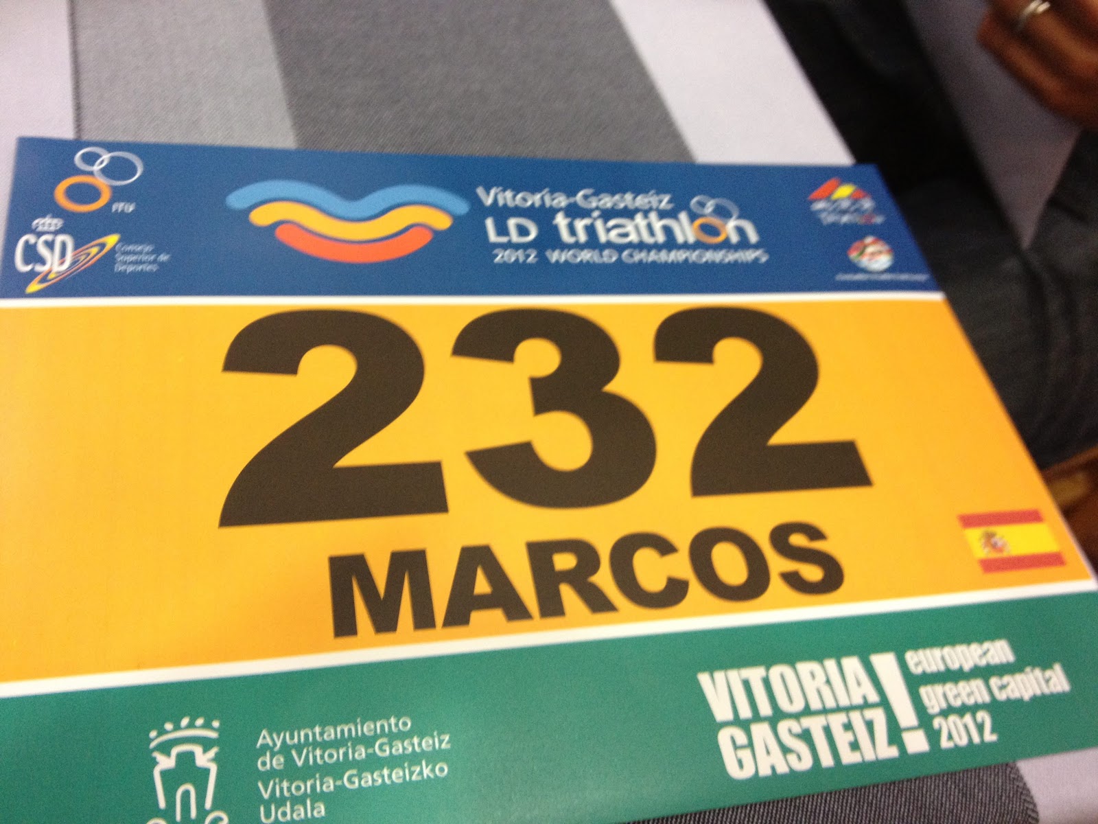 Dissabte 4 de maig: Pel matí darrera sortida de bicicleta per a estirar les cames i provar el nou “mono” que molt amablement em va deixar el presi del club, en COCO (Mai li estaré prou agraït per tot). Temps per copsar el bon ambient que ja hi havia i també per confirmar que els nervis meus estaven “on fire”. I per la tarda accès al BIKE PARK, o el que és el mateix on es deixaven les bicicletes dels vora 1300/1400 participants, a punt per l’endemà (Sí, nosaltres també vam fer números del valor que hi havia en aquella filera que no s’acabava mai de bicicletes; uns 4/5 milions d’euros, sobre rodes), i les dues bosses corresponents a les transicions.