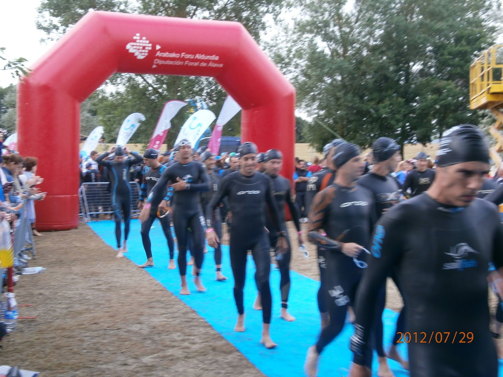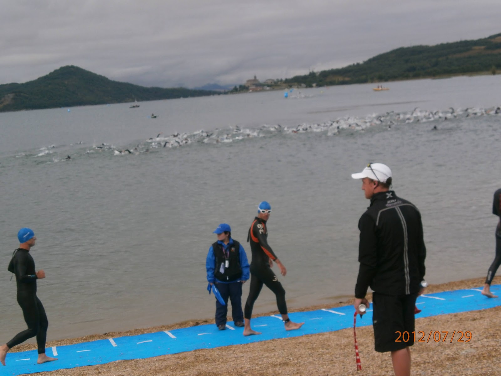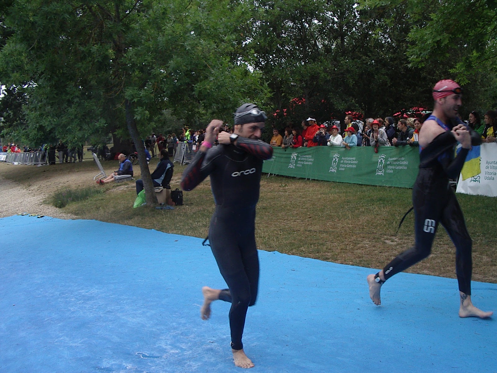 1,9 km natació: Per molt que la gent et digui que hi ha tensió, nervis, cops…la realitat és sempre molt pitjor. L’angoixa s’apodera de més d’un quan nota que l’estiren del peu, que t’enfonsen a l’aiuga…les aproximacions a les boies eren un cúmul de nervis entre la gent. Encara no entenc perquè es posen neguitosos. Sigui com sigui crec que no vaig fer un mal paper, tenint en compte que fa un any que he començat a fer-ho. 37’23” i millor 373é temps de tots els participants.